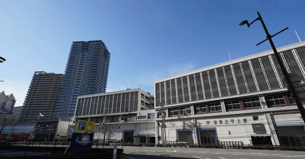 【港湾労働者街】神戸港の裏名物、ケンミン食品の向かいにある、港湾倉庫と団地が一体化した「国産上屋」を見物する|逢阪@今は万博行かせて